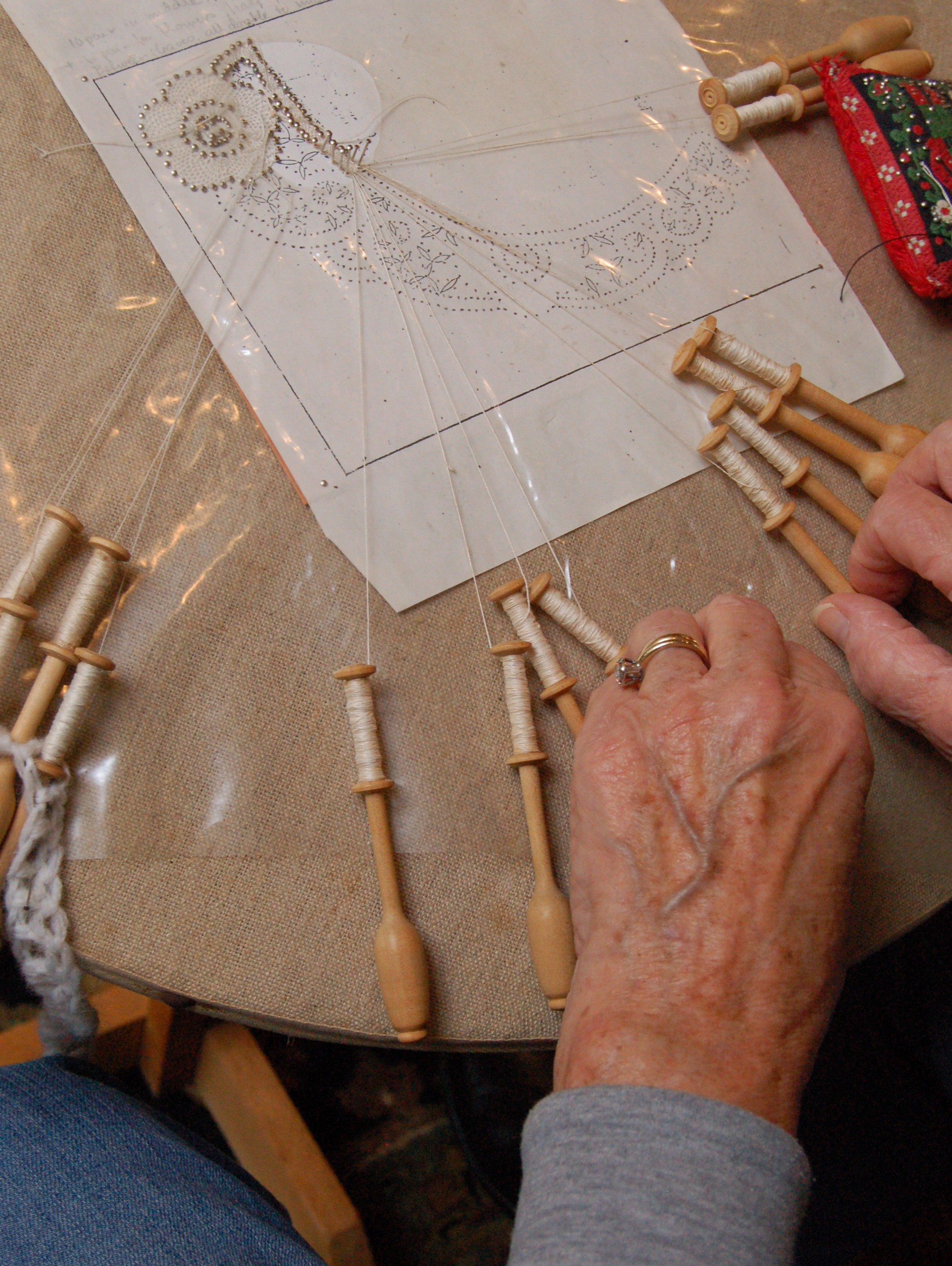 Anne Bobbin Lace (3) ← Previous Next → Photo courtesy of Sand & Pine Magazine Guild member Anne making bobbin lace