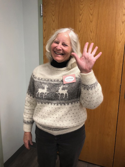 Laura in her reindeer sweater