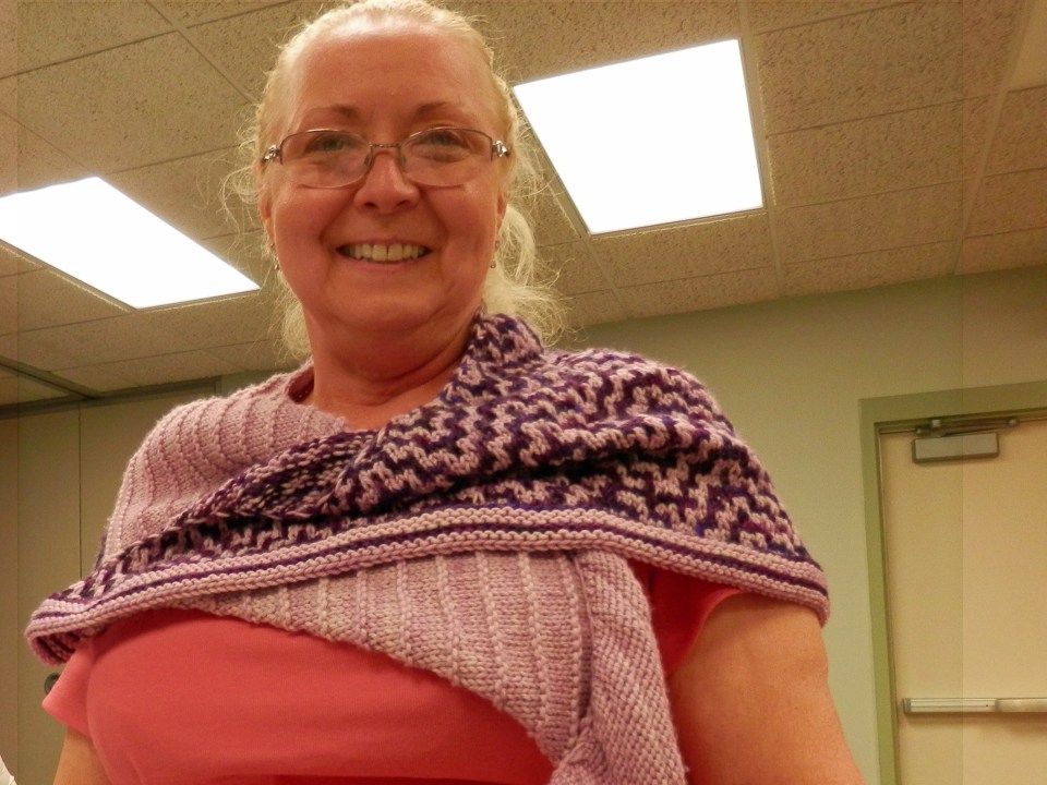 Cindy modeled her knitted scarf