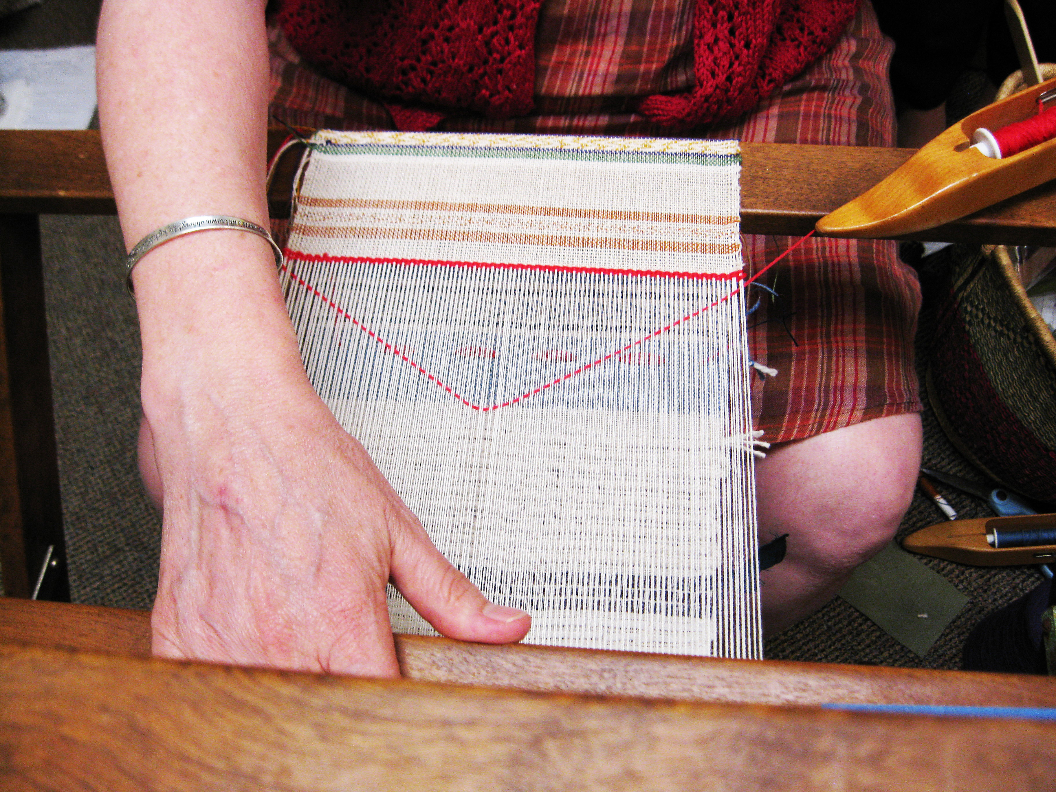 Laying in the weft for winter skirt fabric ← Previous Next → A close-up look at weft-faced weave for winter skirt fabric