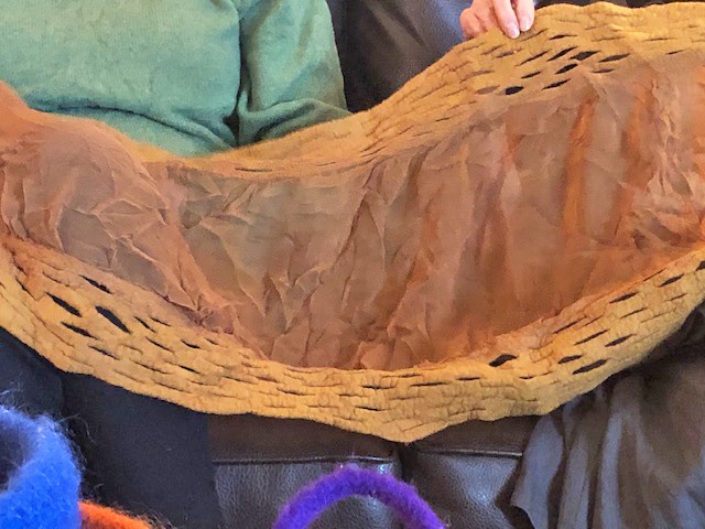 Michelle’s felted silk scarf ← Previous Next → Michelle felted a silk scarf, which left everyone on wondering how did she do it! Like Loading...