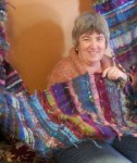 - Nancy made a beautiful, richly colored silk scarf with the Saori technique, to set off a solid colored dress.