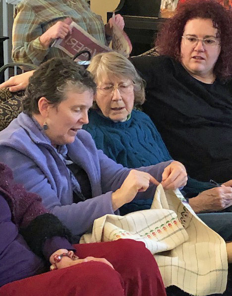 Kathy me Amber Jackie’s teatowels fixed ← Previous Next → Kathy, Jacque and Amber admire Jackie’s tea towel woven in 8-shaft rosepath–a loving tribute to her grandmother and her own love of gardening. Like Loading...