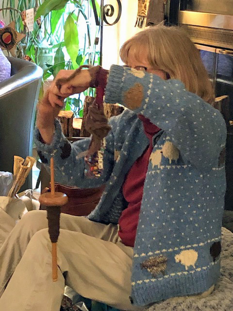 Linda’s wrist distaff fixed ← Previous Next → Linda explained her love of all things sheep and demonstrated how her wrist distaff worked with a drop spindle. Like Loading...
