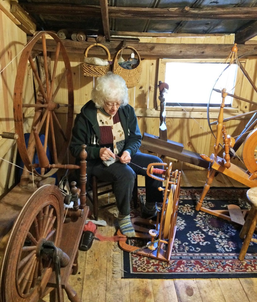 indoors many spinning wheels (fixed) ← Previous Next → Diane, a former member, spins in a room full of spinning wheels Like Loading...