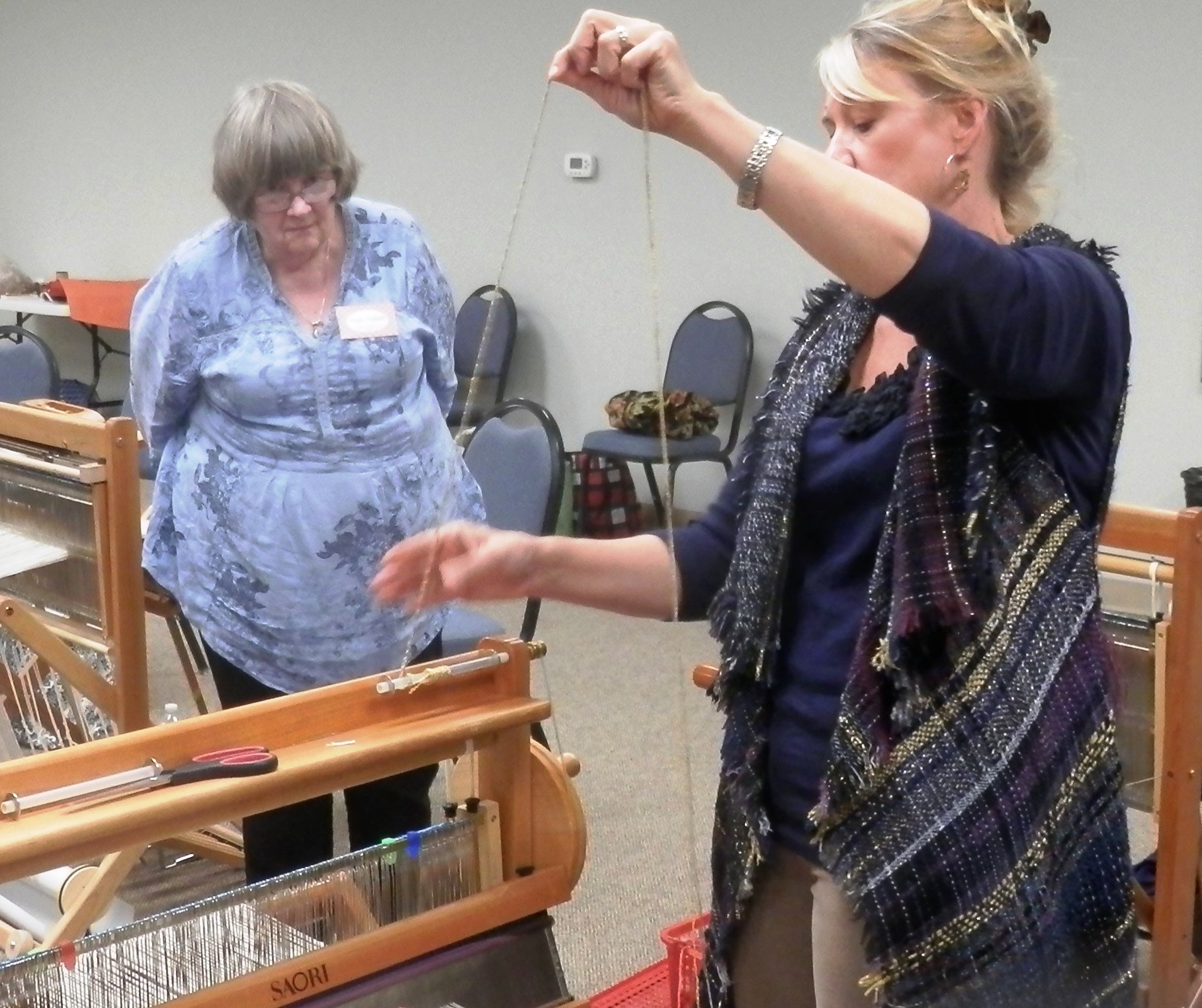 Paula watches Dawn wind a bobbin